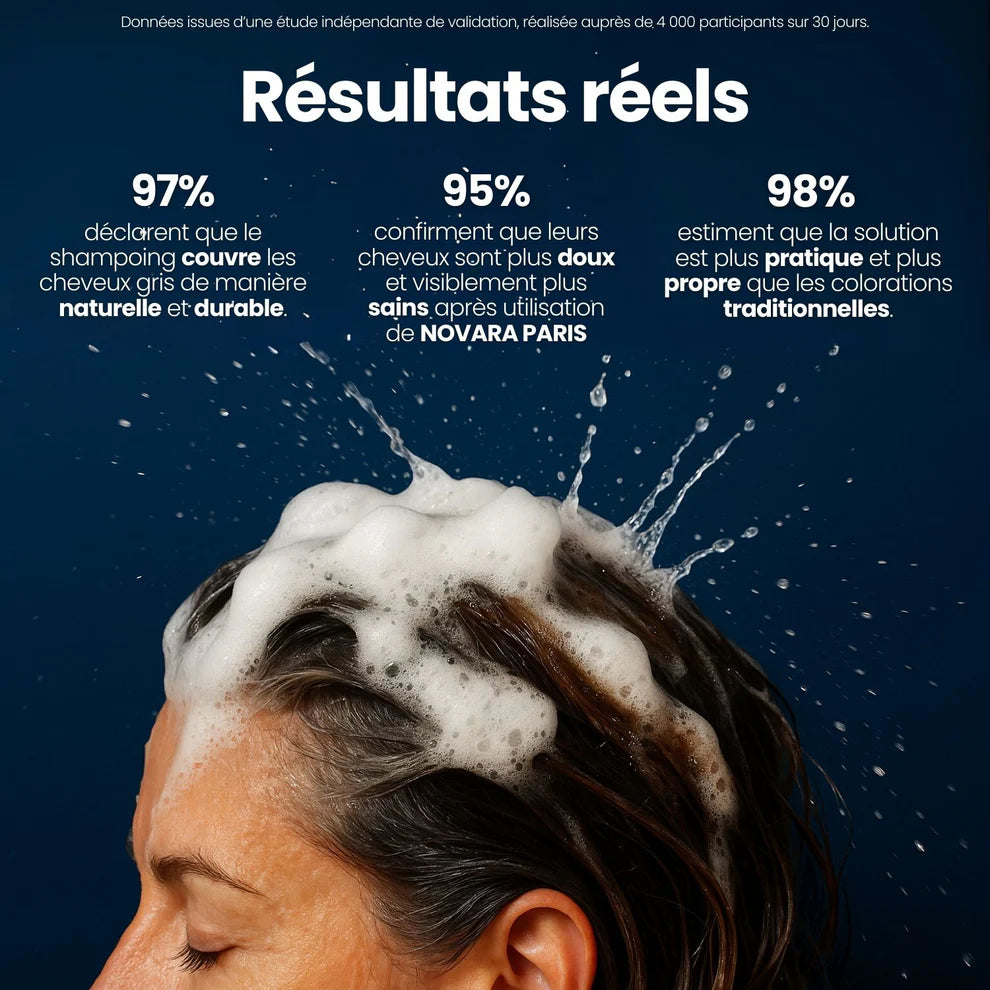 Oui, il est conçu pour une couverture uniforme. Si vos cheveux blancs sont très tenaces, une utilisation régulière renforce l’intensité.